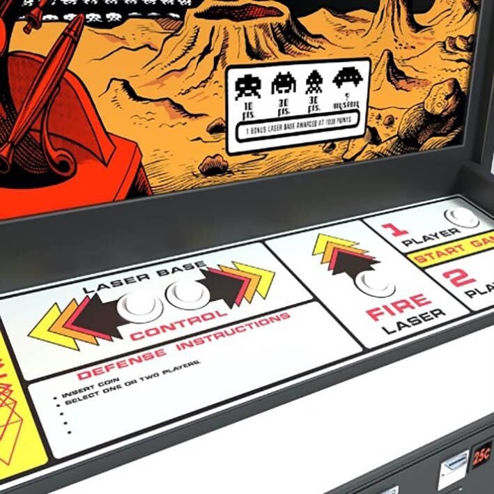 En la parte superior, al principio de cada nivel, aparecen 55 invasores en formación que intentan aterrizar moviéndose de izquierda a derecha. Cada vez que alguno llega a un lateral de la pantalla todos descienden un poco. Además, según se van matando invasores estos se mueven más rápido. A medida que avanzan de nivel estas naves también disparan.